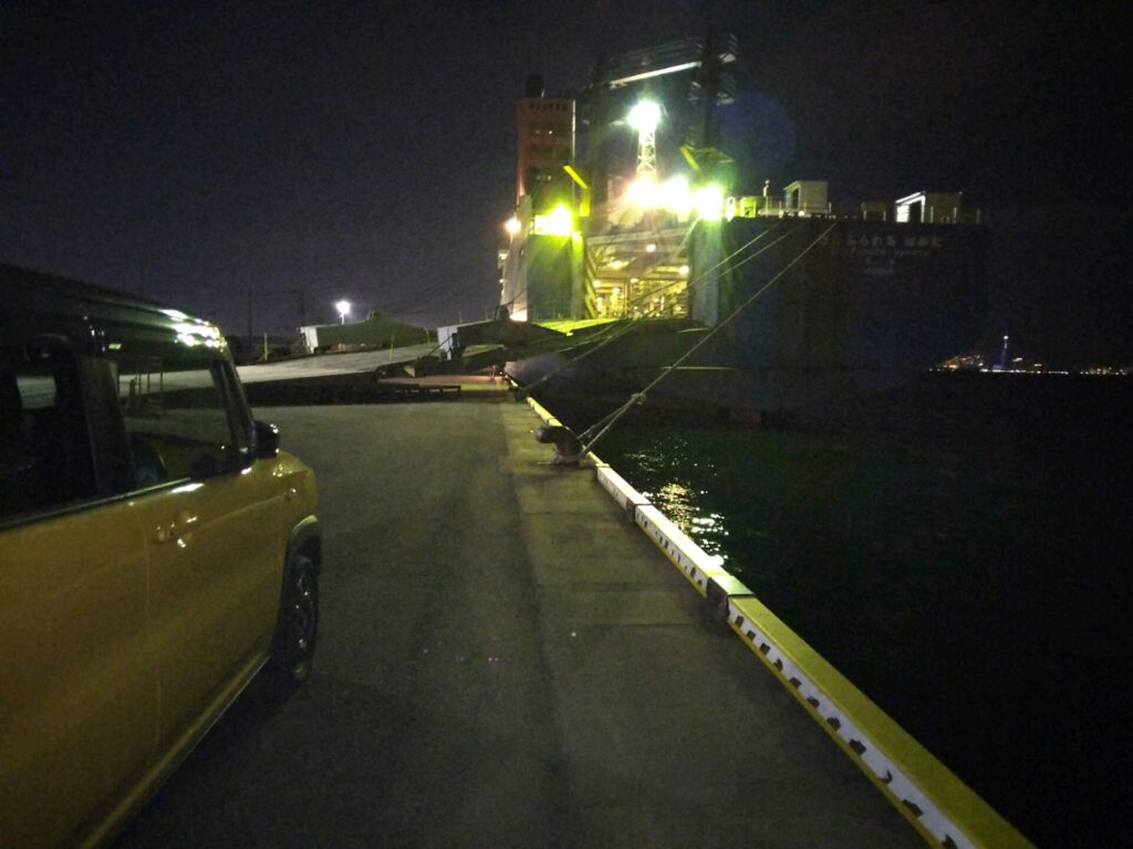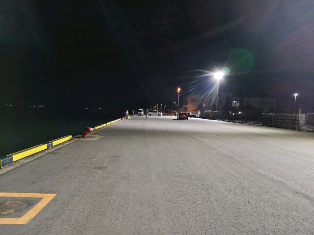 箱崎バナナに着きますと、風がないせいか、家族連れがサーチライトの当たる場所ではしゃいでいました。