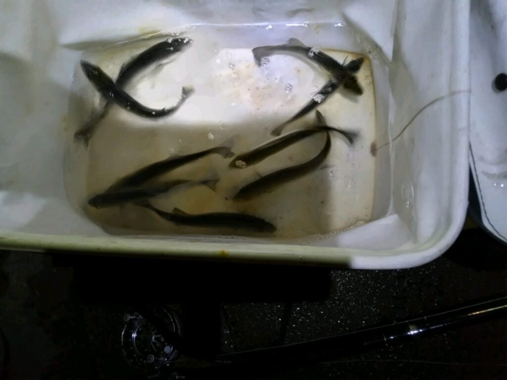 結局、箱崎バナナではいつもの20~25センチぐらいのシーバスが6匹釣れ、納竿としました。