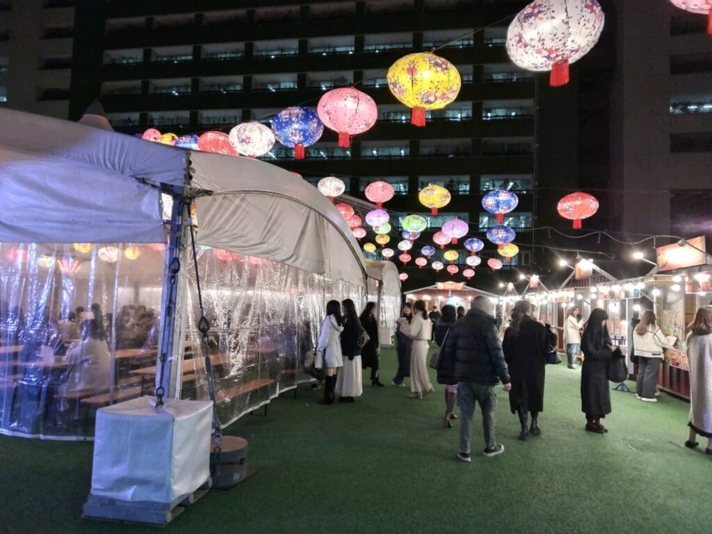 台湾祭in福岡2026- 春節台南ランタン祭が催されており、多くのグルメの出店が出て、ビニールテントの中で食事をされている方がかなりおられました。