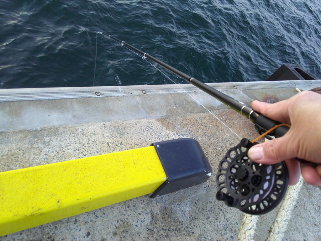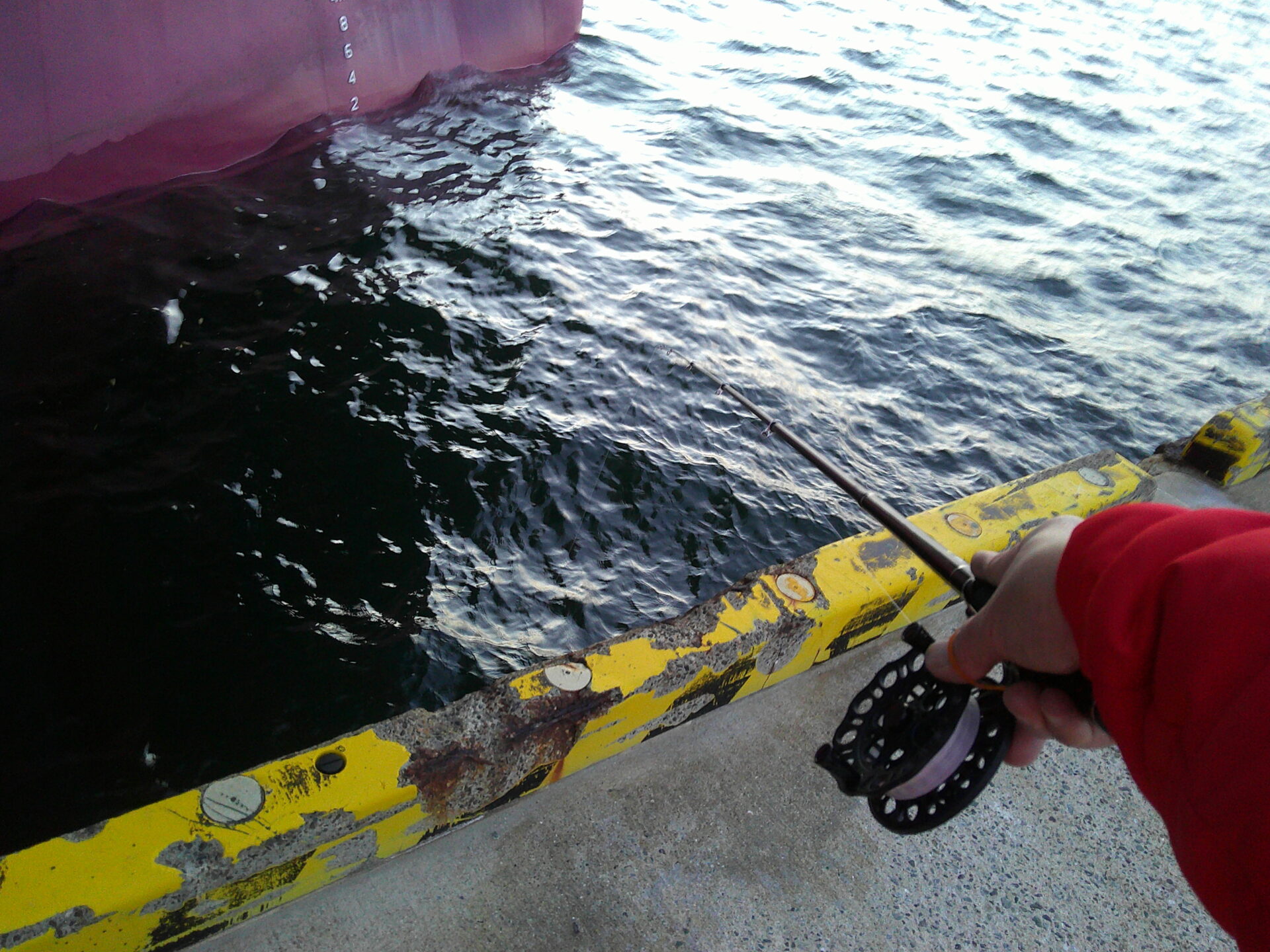 写真では分かりづらいのですが、西風が強く、短い竿で扱いやすいのですが、肝心の魚の気配はまるでありません。