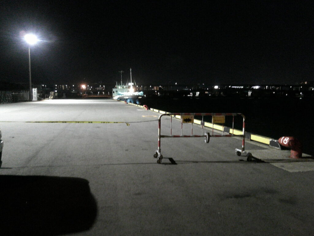 箱崎バナナは西風が真っ向から当たるポイントではありますが、夜になるとサーチライトが照らして、明るい釣り場なので、年中釣り人が入るポイントでもあります。