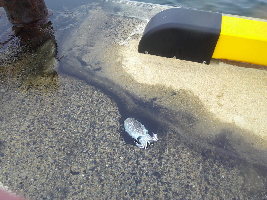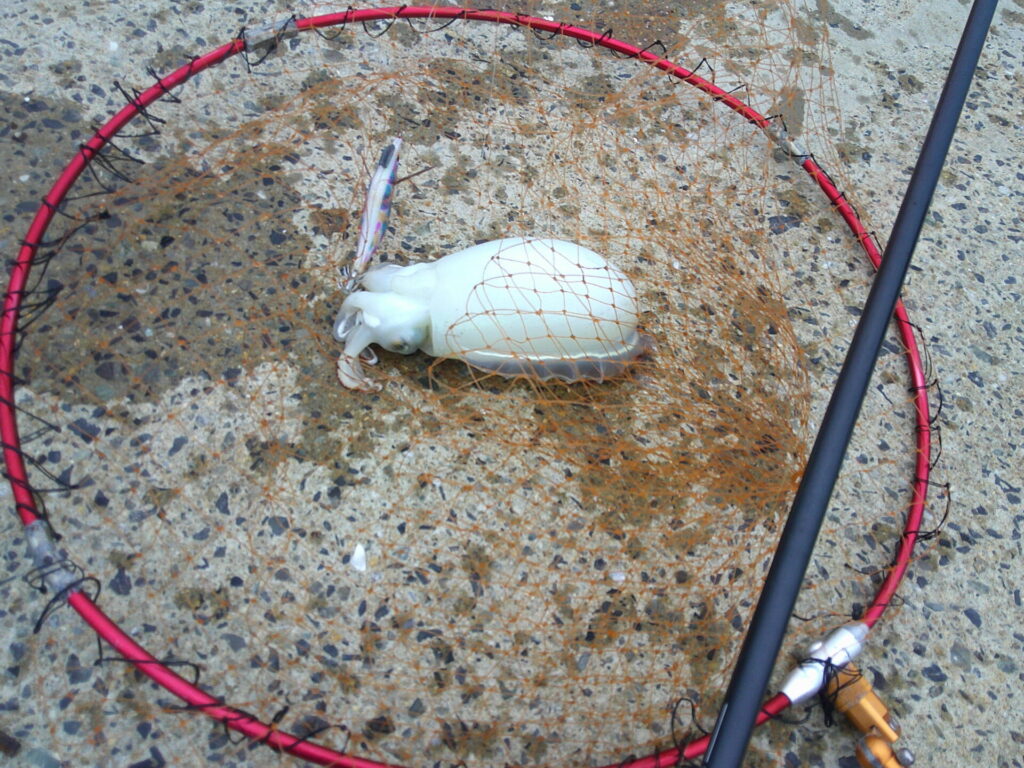 気を取り直して、探っていますと、かなり堤防近くで、コウイカがエギを抱いてきました。