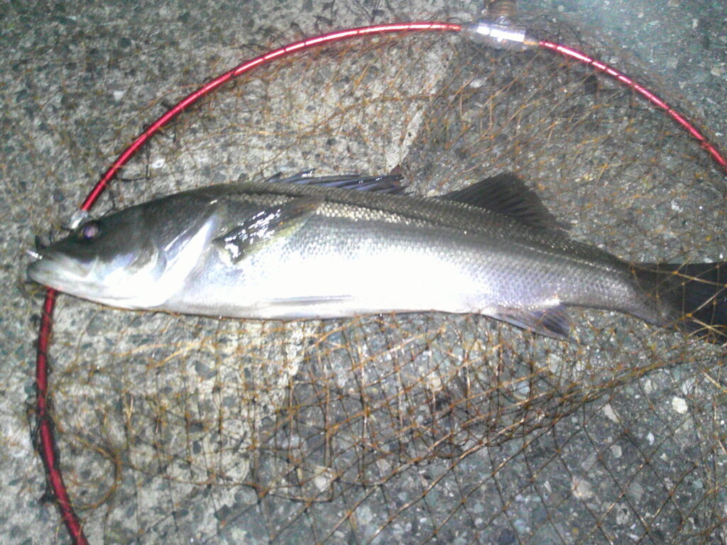 58センチのシーバスが2・1メートルのヘチ探りの竿に掛かり取り込みが大変でした!